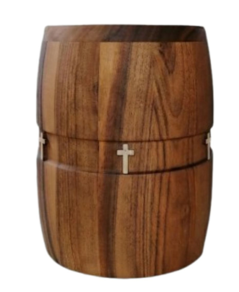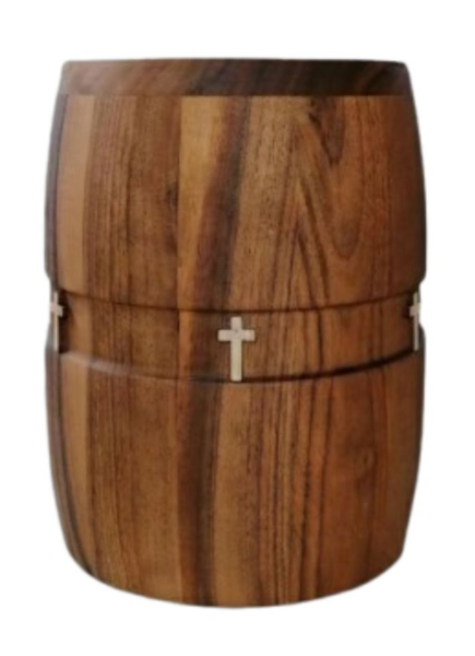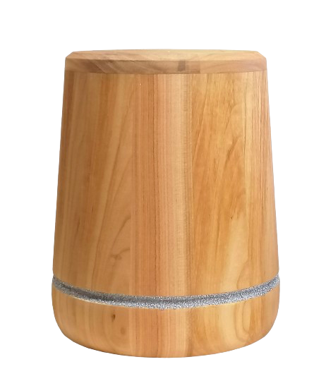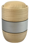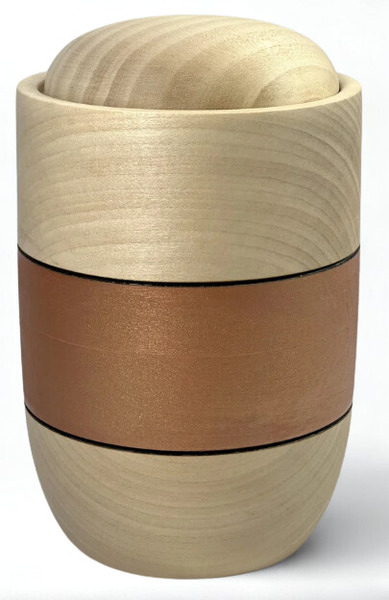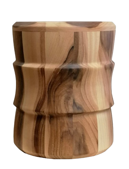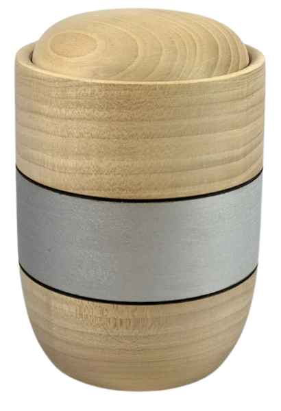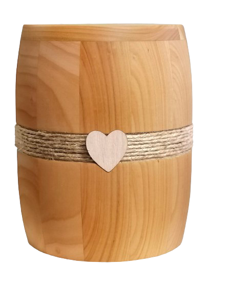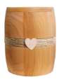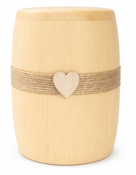 Runde Massivholzurnen mit geölter Oberfläche, wahlweise mit breiter Kehlung, eleganter Fräsung oder einem dekorativen Band mit Herz-Emble oder ganz schlicht und elegant.